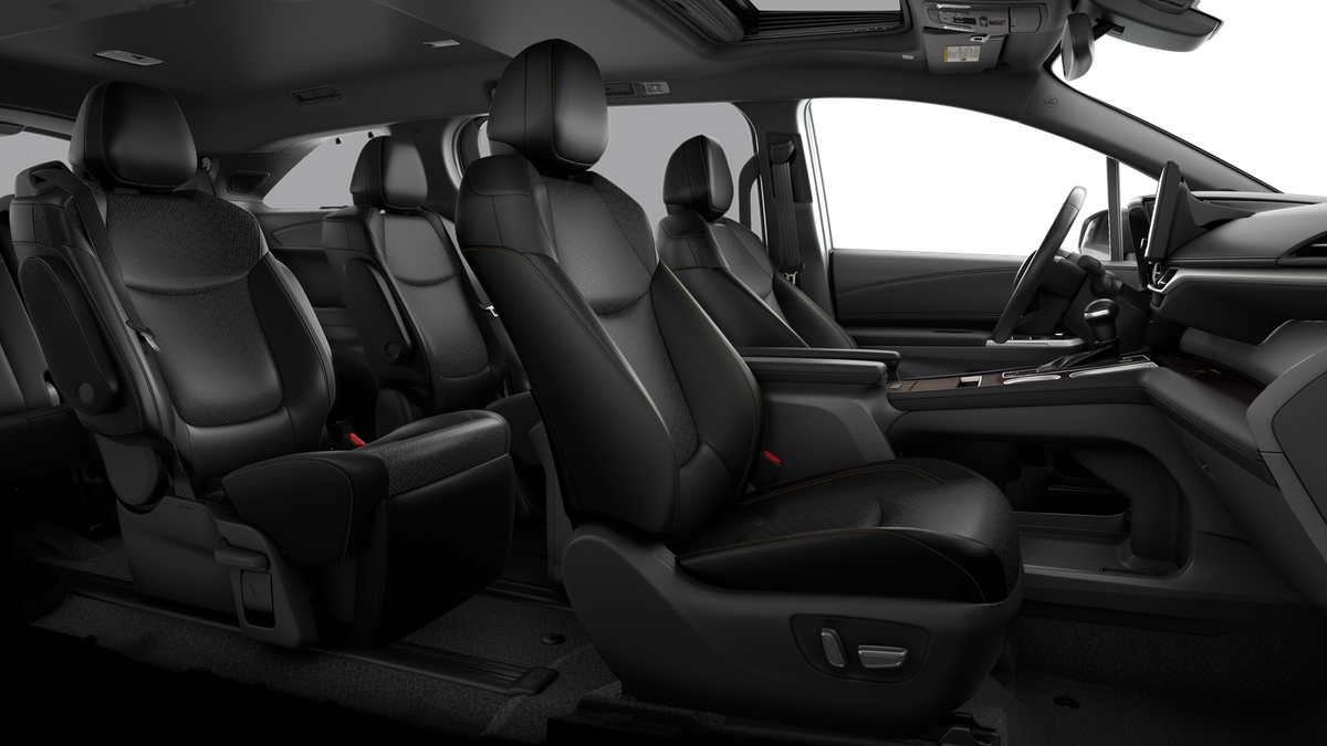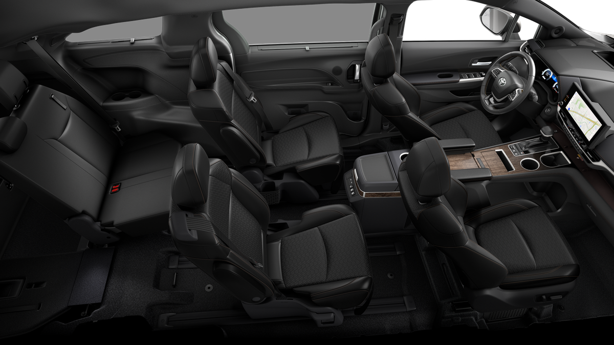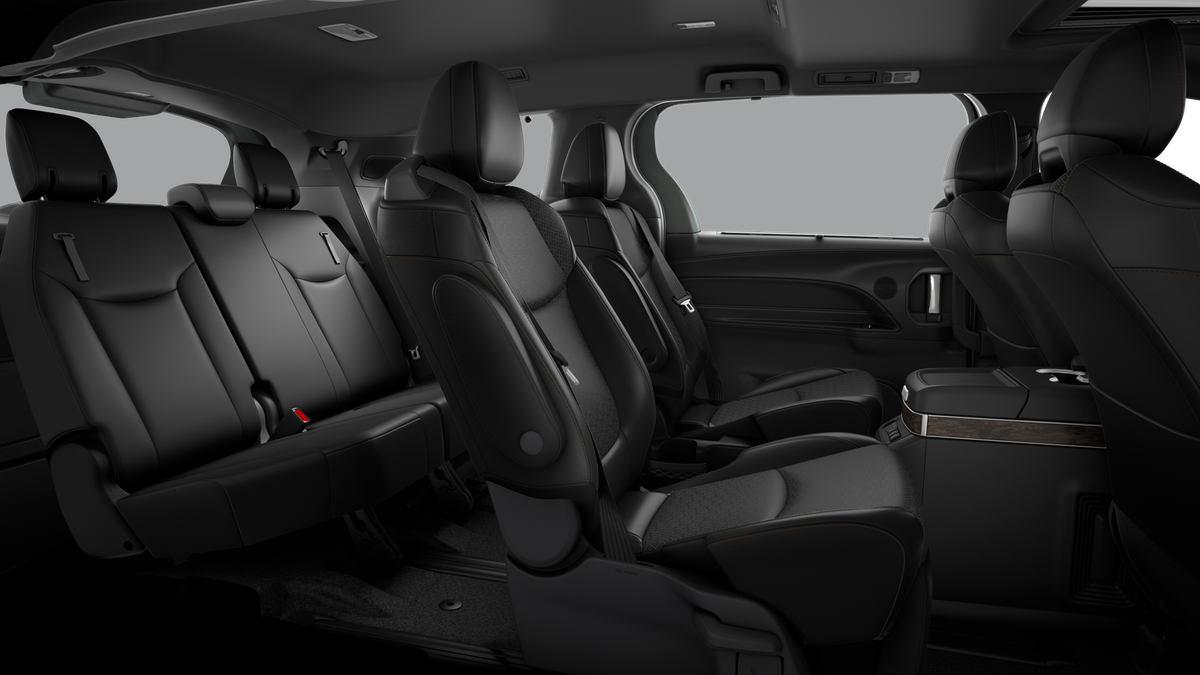 • 7-passenger seating with heated premium leather-trimmed second-row-seat captain's chairs with super-long-slide feature and ottomans [reclining_seat] [sienna_ottoman]sienna_ottomansienna_ottoman]