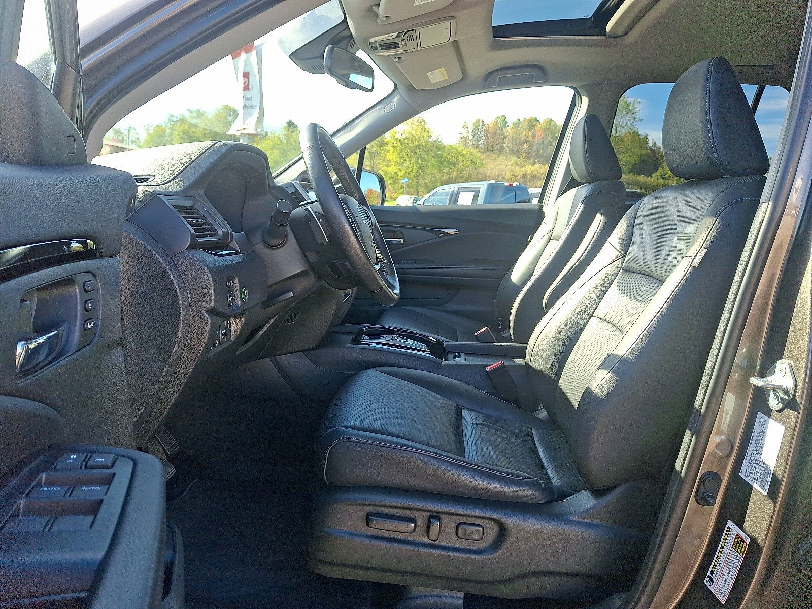 19/24 City/Highway MPG Gray w/Leather Seat Trim, 4-Wheel Disc Brakes, 4.334 Axle Ratio, 8 Speakers, ABS brakes, Air Conditioning, Alloy wheels, AM/FM radio: SiriusXM, Apple CarPlay/Android Auto, Auto High-beam Headlights, Auto-dimming Rear-View mirror, Automatic temperature control, Blind Spot Information (BSI) System warning, Bluetooth®® Hands-Free Link, Brake assist, Bumpers: body-color, Compass, Delay-off headlights, Driver door bin, Driver vanity mirror, Driver's Seat Mounted Armrest, Dual front impact airbags, Dual front side impact airbags, Electronic Stability Control, Exterior Parking Camera Rear, Forward collision: Collision Mitigation Braking System (CMBS) + FCW mitigation, Four wheel independent suspension, Front anti-roll bar, Front Bucket Seats, Front dual zone A/C, Front fog lights, Front reading lights, Fully automatic headlights, Garage door transmitter: HomeLink, Heated door mirrors, Heated Front Bucket Seats, Heated front seats, Heated steering wheel, Honda Satellite-Linked Navigation System, Illuminated entry, Leather Seat Trim, Low tire pressure warning, Memory seat, Navigation system: Honda Satellite-Linked Navigation System, Occupant sensing airbag, Outside temperature display, Overhead airbag, Overhead console, Panic alarm, Passenger door bin, Passenger seat mounted armrest, Passenger vanity mirror, Power door mirrors, Power driver seat, Power moonroof, Power passenger seat, Power steering, Power windows, Radio data system, Radio: AM/FM/MP3 w/Nav System & Truck-Bed Audio, Rear air conditioning, Rear anti-roll bar, Rear reading lights, Rear seat center armrest, Rear step bumper, Rear window defroster, Remote keyless entry, Security system, SiriusXM Radio, Speed control, Speed-sensing steering, Split folding rear seat, Steering wheel mounted audio controls, Tachometer, Telescoping steering wheel, Tilt steering wheel, Traction control, Trip computer, Variably intermittent wipers, Wheels: 18 Exclusive Gray-Painted Alloy, Free PA State Inspections, Lifetime Car Washes with a Service Visit, Lifetime Pit-Stop Program, Lifetime Multi-Point Inspections, Convenient Financing Options, Sales 724-973-4295, Gray w/Leather Seat Trim.