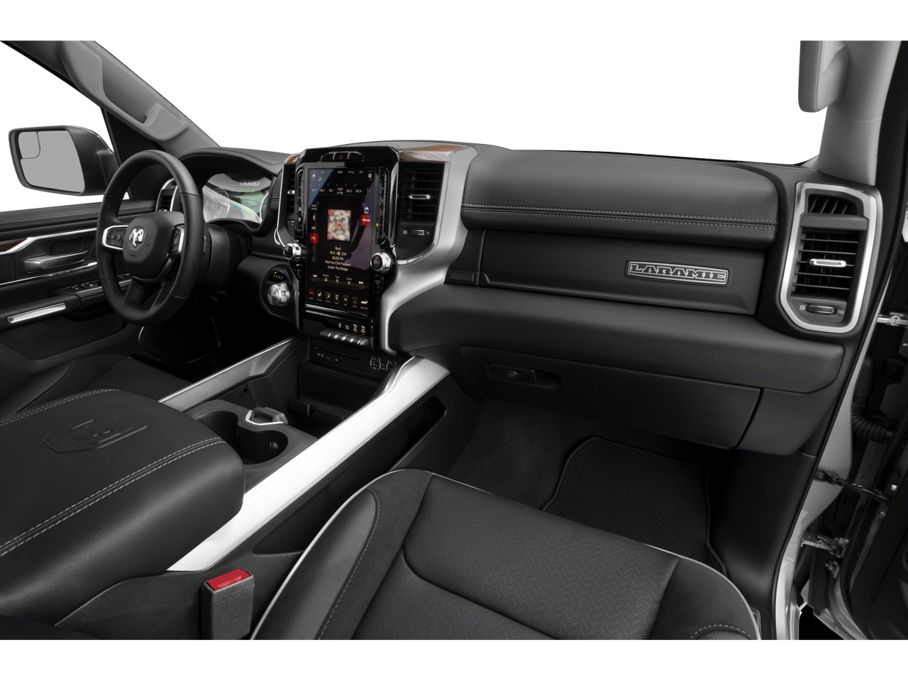 15/21 City/Highway MPG #1 Seat Foam Cushion, 1-Yr SiriusXM Guardian Trial, 10 Speakers, 12 Touchscreen Display, 3 Rear Seat Head Restraints, 4 Way Front Headrests, 4-Wheel Disc Brakes, 48V Belt Starter Generator, 4G LTE Wi-Fi Hot Spot, 5-Year SiriusXM Traffic Service, 5-Year SiriusXM Travel Link Service, 8.4 Touchscreen Display, ABS brakes, Adaptive Cruise Control w/Stop & Go, Adjustable pedals, Advanced Safety Group, Air Conditioning, Alloy wheels, AM/FM radio: SiriusXM, Anti-Spin Differential Rear Axle, Apple CarPlay, Apple CarPlay/Android Auto, Audio memory, Auto High Beam Headlamp Control, Auto-dimming door mirrors, Auto-dimming Rear-View mirror, Automatic temperature control, Black Exterior Truck Badging, Black Headlamp Bezels, Black Interior Accents, Black Tubular Side Steps (DISC), Blind Spot & Cross Path Detection, Body Color Door Handles, Body Color Exterior Mirrors, Body Color Front Bumper, Body Color Premium Power Mirrors, Body Color Rear Bumper w/Step Pads, Brake assist, Bucket Seats, Bumpers: chrome, Compass, Delay-off headlights, Disassociated Touchscreen Display, Dome Dual LED Reading Lamp, Driver door bin, Driver Seat Memory, Driver vanity mirror, Dual Exhaust w/Black Tips, Dual front impact airbags, Dual front side impact airbags, Dual-Pane Panoramic Sunroof, Electronic Stability Control, Foam Bottle Insert (Door Trim Panel), For Details, Visit DriveUconnect.com, Front anti-roll bar, Front Center Armrest w/Storage, Front dual zone A/C, Front fog lights, Front reading lights, Front Seat Back Map Pockets, Front wheel independent suspension, Full Length Upgraded Floor Console, Full Speed Forward Collision Warning Plus, Fully automatic headlights, Garage door transmitter, Google Android Auto, GPS Antenna Input, GPS Navigation, Grille Surround 3 Black Texture 2 Black, harman/kardon 19 Speaker Premium Sound, HD Radio, Heated door mirrors, Heated Front Seats, Heated front seats, Heated Second Row Seats, Heated Steering Wheel, Heated steering wheel, Illuminated entry, Integrated Center Stack Radio, Lane Keep Assist, Laramie Level 2 Equipment Group, Leather steering wheel, Leather Trim 40/20/40 Bench Seat, Leather Trimmed Bucket Seats, LED Dome/Reading Lamp, Low tire pressure warning, Memory seat, Night Edition, Occupant sensing airbag, Outside temperature display, Overhead airbag, Overhead console, Panic alarm, Parallel & Perp Park Assist w/Stop, ParkSense Front/Rear Park Assist w/Stop (DISC), ParkView Rear Back-Up Camera, Passenger door bin, Passenger vanity mirror, Pedal memory, Power 4-Way Driver Lumbar Adjust, Power 4-Way Passenger Lumbar Adjust, Power 8-Way Driver & Passenger Seats, Power door mirrors, Power driver seat, Power passenger seat, Power steering, Power windows, Quick Order Package 27H Laramie, Radio data system, Radio: Uconnect 12 w/Navigation, Radio: Uconnect 4 w/8.4 Display, Radio: Uconnect 4C Nav w/8.4 Display, Rain Sensitive Windshield Wipers, Rear 60/40 Folding Seat, Rear 60/40 Folding Split Recline Seat, Rear anti-roll bar, Rear seat center armrest, Rear step bumper, Rear Underseat Compartment Storage, Rear Wheelhouse Liners, Rear window defroster, Remote keyless entry, Remote Tailgate Release, Security system, SiriusXM Satellite Radio, SiriusXM Traffic Plus, SiriusXM Travel Link, SiriusXM w/360L, Speed control, Split folding rear seat, Sport Performance Hood, Steering wheel mounted audio controls, Tachometer, Tailgate Ajar Warning Lamp, Telescoping steering wheel, Tilt steering wheel, Traction control, Trailer Brake Control, Trip computer, Turn signal indicator mirrors, USB Host Flip, Variably intermittent wipers, Ventilated Front Seats, Ve