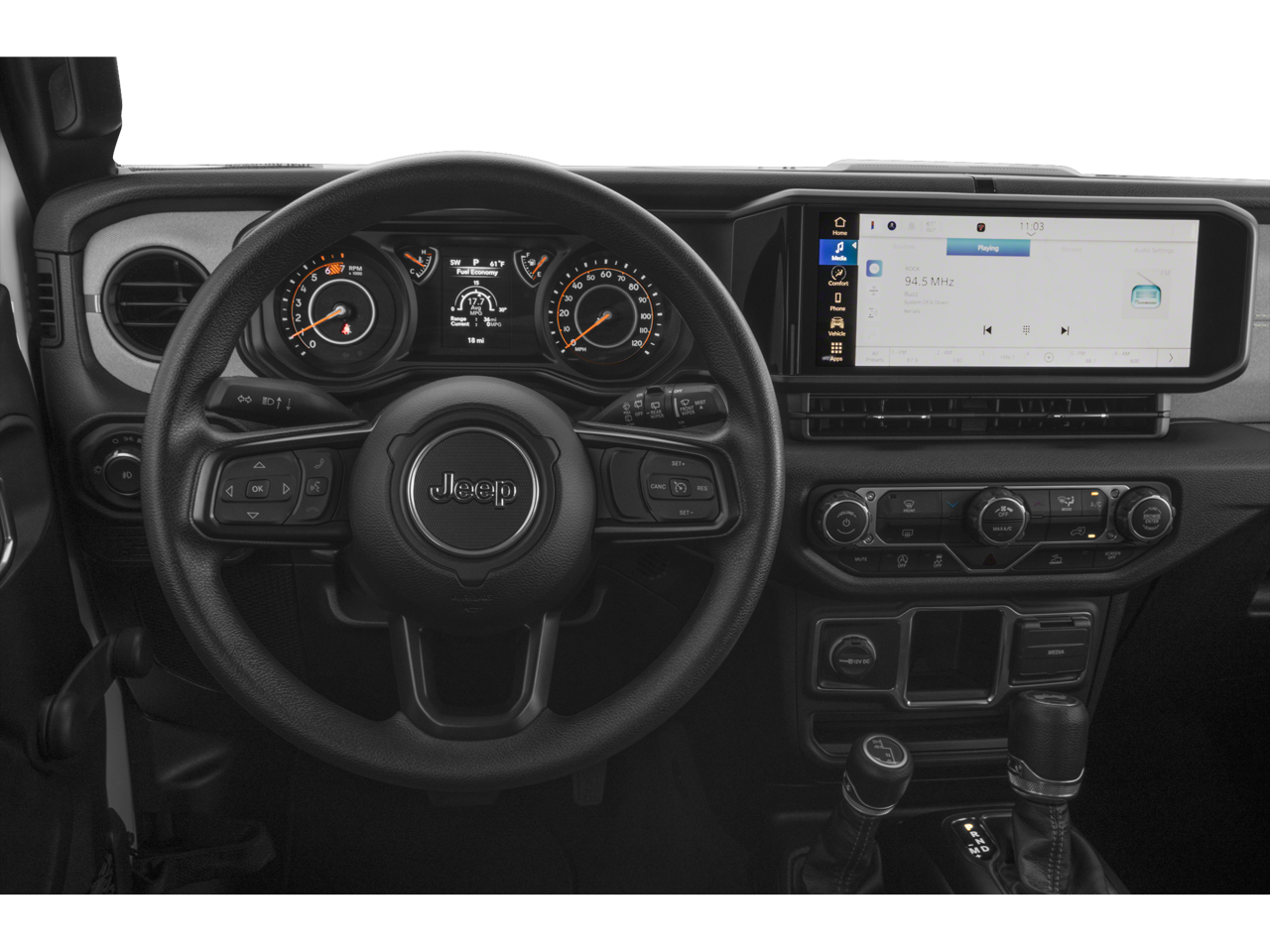 17/23 City/Highway MPG 110 MPH Vehicle Max Speed Calibration, 3.45 Overall Top Gear Ratio, 4-Wheel Disc Brakes, 8 Speakers, ABS brakes, Advanced Brake Assist, Air Conditioning, AM/FM radio: SiriusXM, Apple CarPlay/Android Auto, Automatic Headlamps, Aux Battery, Black 3-Piece Hard Top, Brake assist, Cloth Low-Back Bucket Seats, Compass, Corning Gorilla Glass, Deep Tint Sunscreen Windows, Delay-off headlights, Driver door bin, Driver vanity mirror, Dual front impact airbags, Dual front side impact airbags, Electronic Stability Control, Enhanced Adaptive Cruise Control, Freedom Panel Storage Bag, Front anti-roll bar, Front Bucket Seats, Front Center Armrest w/Storage, Front fog lights, Front reading lights, Full Speed Forward Collision Warning Plus, Illuminated entry, Integrated roll-over protection, Low tire pressure warning, MOPAR All-Weather Floor Mats, MOPAR Hardtop Headliner, Non-Lock Fuel Cap w/o Discriminator, Normal Duty Suspension, Occupant sensing airbag, Outside temperature display, Overhead airbag, Panic alarm, ParkView Rear Back-Up Camera, Passenger door bin, Passenger vanity mirror, Power Heated Mirrors, Power steering, Power windows, Premium Wrapped Steering Wheel, Quick Order Package 23S Sport S, Radio data system, Radio: Uconnect 5 w/12.3 Display, Rear anti-roll bar, Rear reading lights, Rear Window Defroster, Rear Window Wiper/Washer, Remote keyless entry, Security Alarm, Speed control, Steering wheel mounted audio controls, Stop-Start Dual Battery System, Sun Visors w/Illuminated Vanity Mirrors, Tachometer, Telescoping steering wheel, Tilt steering wheel, Traction control, Trip computer, Variably intermittent wipers, Wheels: 17 x 7.5 Black Steel Styled, Wheels: 17 x 7.5 Gray, Free PA State Inspections, Lifetime Car Washes with a Service Visit, Lifetime Pit-Stop Program, Lifetime Multi-Point Inspections, Convenient Financing Options, Sales 724-973-4295.